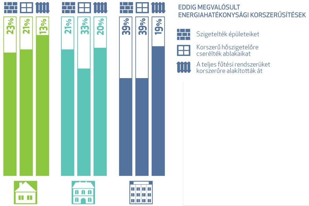 Eddig a háztartásoknak csak kis része végzett korszerűsítést otthonában: 20%-uk hőszigetelt, 25%-uk cserélte korszerűre ablakát és 15-20%-uk végzett fűtéskorszerűsítést. A panelépületekben lakók nagyobb arányban korszerűsítettek.