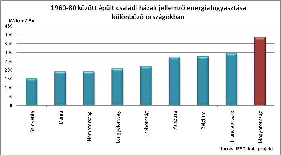 Mivel az egységre vetített magyar energiaárak európai szinten nem kiemelkedőek (lásd: 2. ábra), ezért a magas energia-kiadások elsődleges oka az energia rossz hatékonyságú felhasználása. Magyarországon 1m2 fűtését sokkal több energia felhasználásával oldjuk meg, mint más EU államokban. (lásd: 3. ábra)