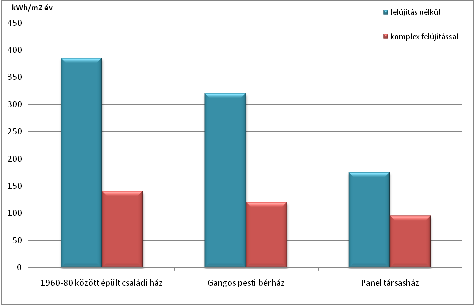 A nagy kereslet nem meglepő, hiszen (amint azt az 6. ábra mutatja az Energiaklub követelményérték-optimalizálási tanulmánya alapján) egy komplex felújítás akár el is felezheti az energiaköltségeket. Ha arra gondolunk, hogy az átlagos háztartás kiadásainak 16%-a energiára megy, akkor egy komplex felújítás hatása (a hitelek visszafizetését követően) egy átlagos családnál ugyanaz, mintha a szülők fizetését 8%-kal megemelték volna.